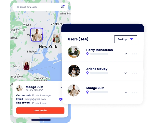 Facilitate networking within your community. Hivebrite’s native “Who’s around me” feature lets your members see who is located near them on a beautiful map interface.
